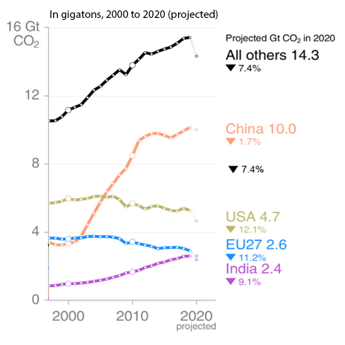 FIGURE 9. Estimated world CO2 reductions during pandemic in 2020. Reductions were 17 percent during the first peak in spring but have declined to 7 percent, the biggest drop ever, over the course of the year, with negligible long-term climate improvements (Sourced from: München, 2020).