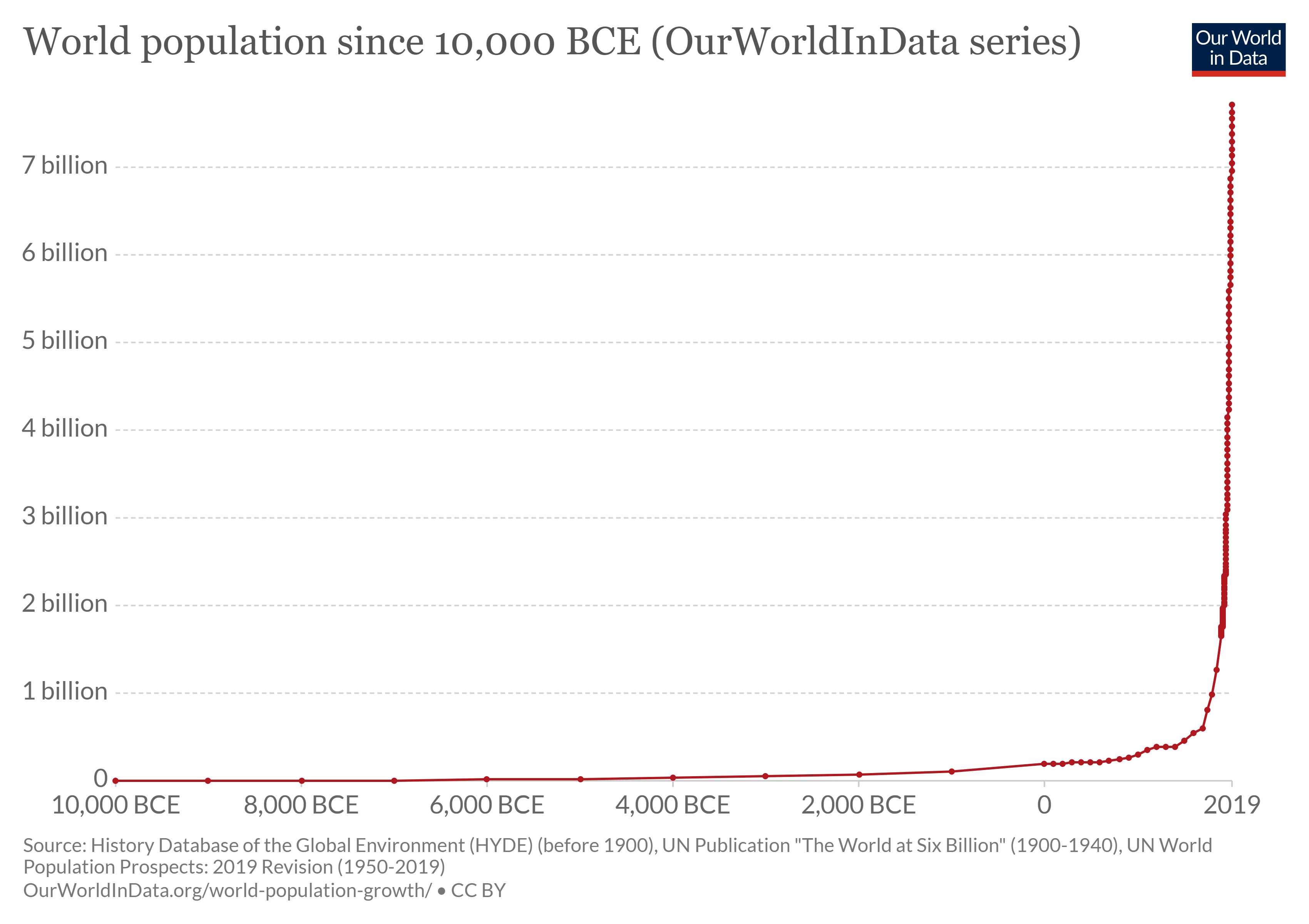 FIGURE 10. Population growth over the last 10,000 years. (Source: Our World in Data, 2019)